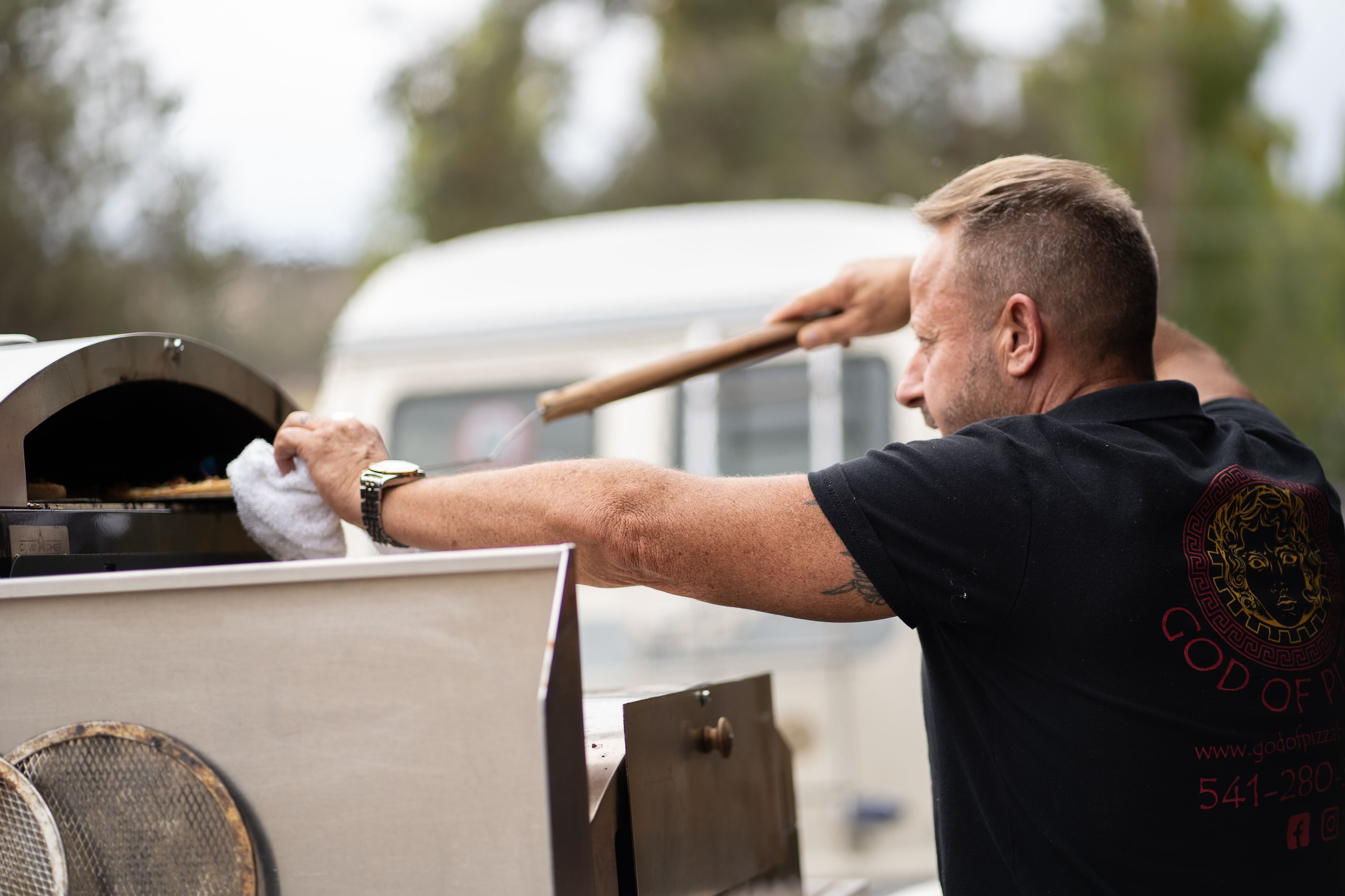 What started as friends raving about his handmade pies — and jokingly calling him the “god of pizza” — quickly turned into a full-scale live pizza catering experience serving events across Central Oregon.